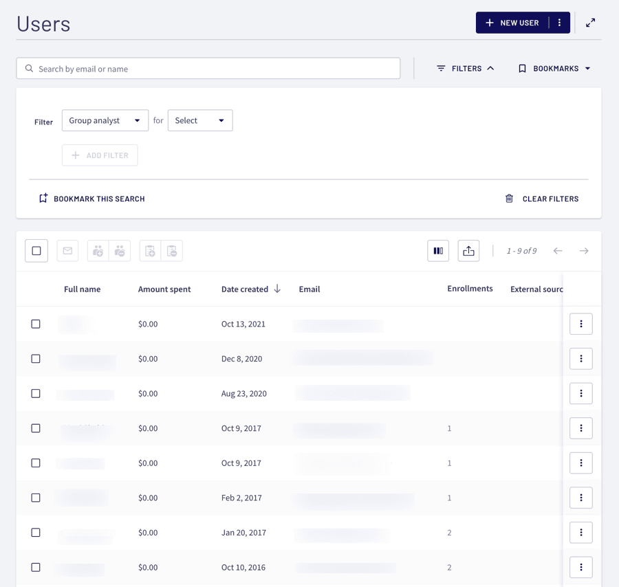 The system offers sophisticated filtering mechanisms enabling precise learner segmentation based on multiple criteria. You can also save these custom filters as favorites for convenient access in subsequent sessions.