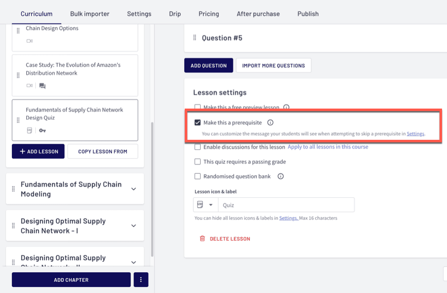 Creating a quiz question in Thinkific