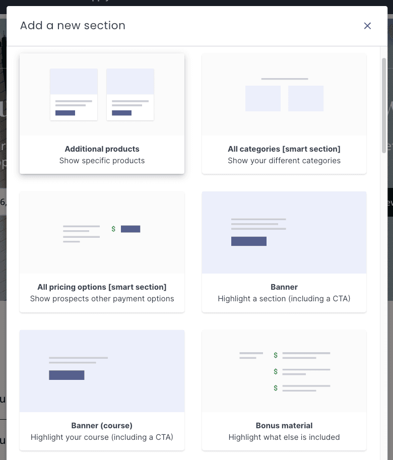 • Bundles: Similar in concept to memberships, bundles let you combine multiple individual products for sale as a single package.