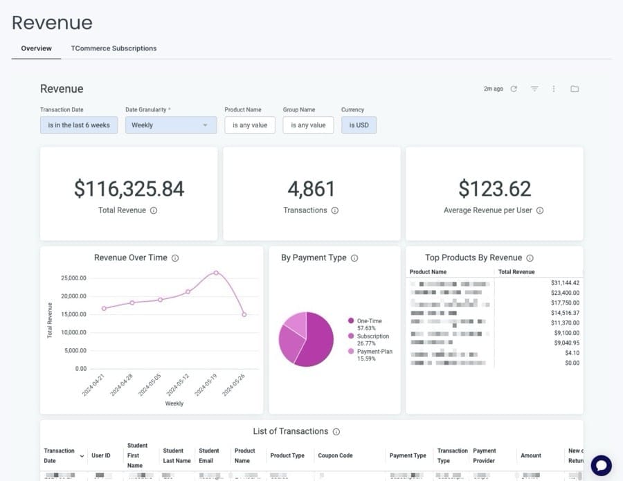 Thinkific revenue dashboard
