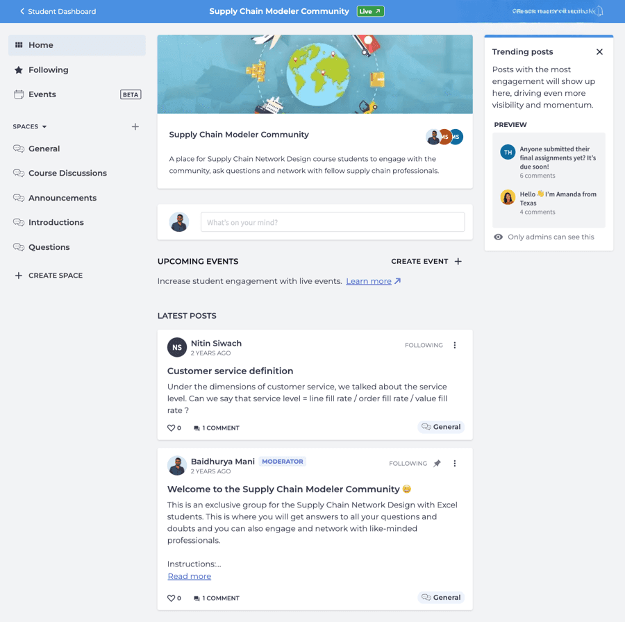 • Communities: It enables the establishment of exclusive online communities where your learners can interact and build connections amongst themselves.