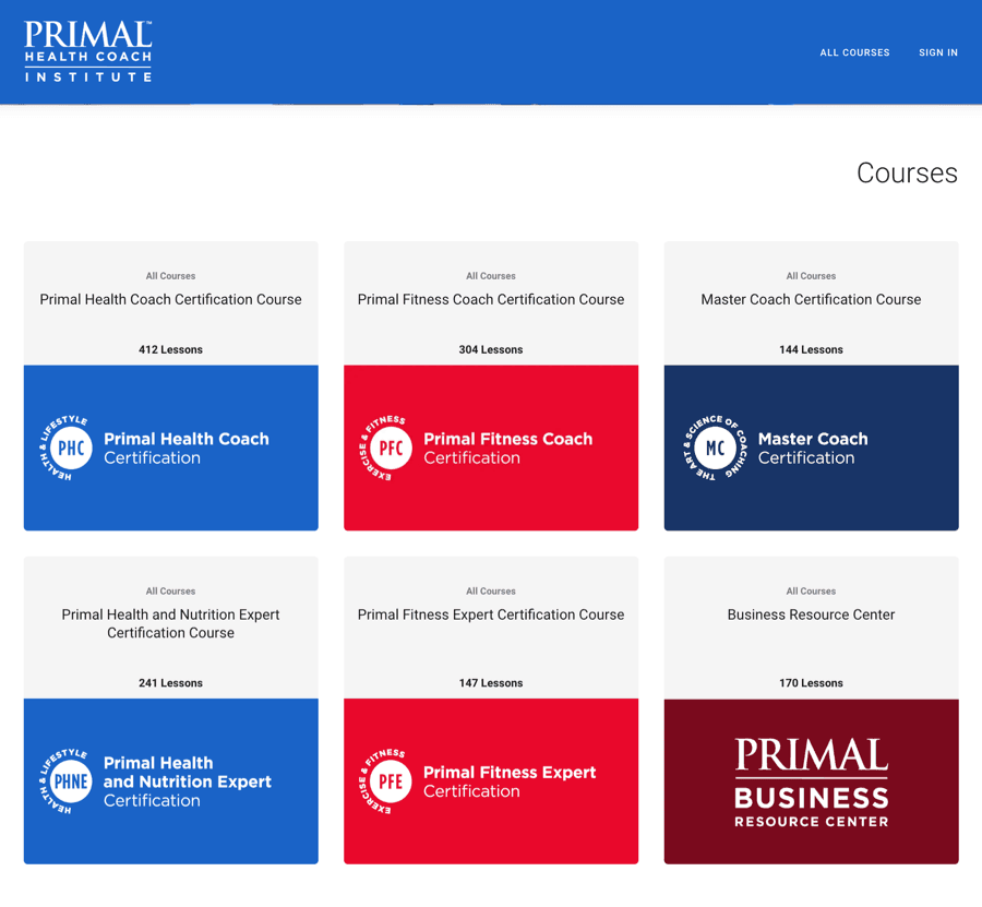Primal Health Coach Institute’s course page