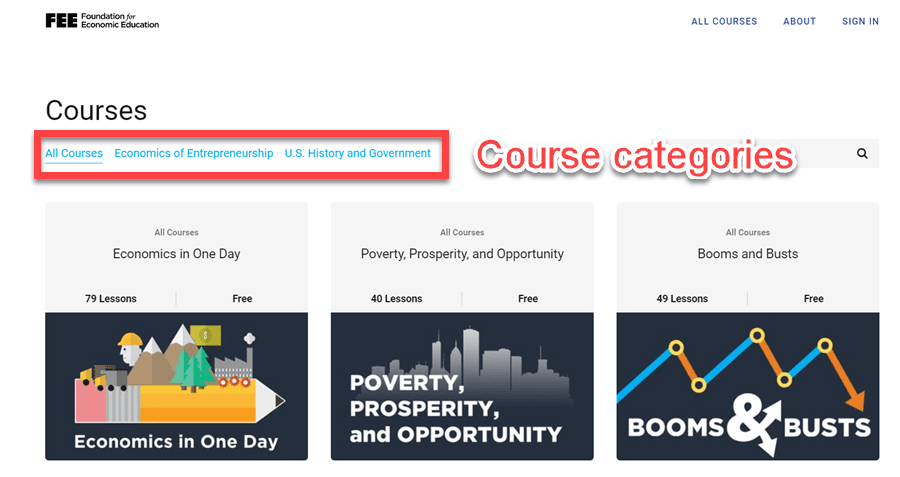 FEE’s educational platform is constructed using Thinkific, and while the organization’s initials might suggest chargeable courses, the opposite holds true. They present 17 distinct courses, all of which are available without charge.