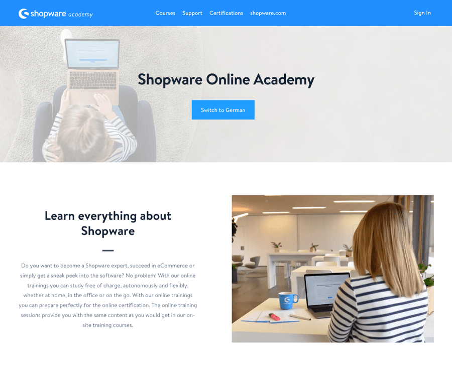 Shopware Online Academy’s landing page