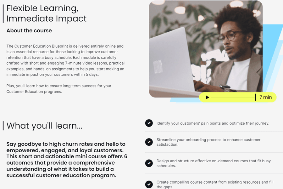 The Thinkific educational system extends beyond facilitating conventional online learning modules incorporating assessments and certifications. Rather, numerous program developers utilize it for distributing straightforward web-based classes featuring video content and downloadable PDF materials.
