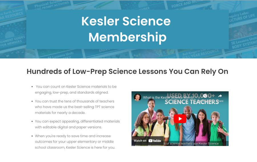 Kesler Science Membership’s landing page