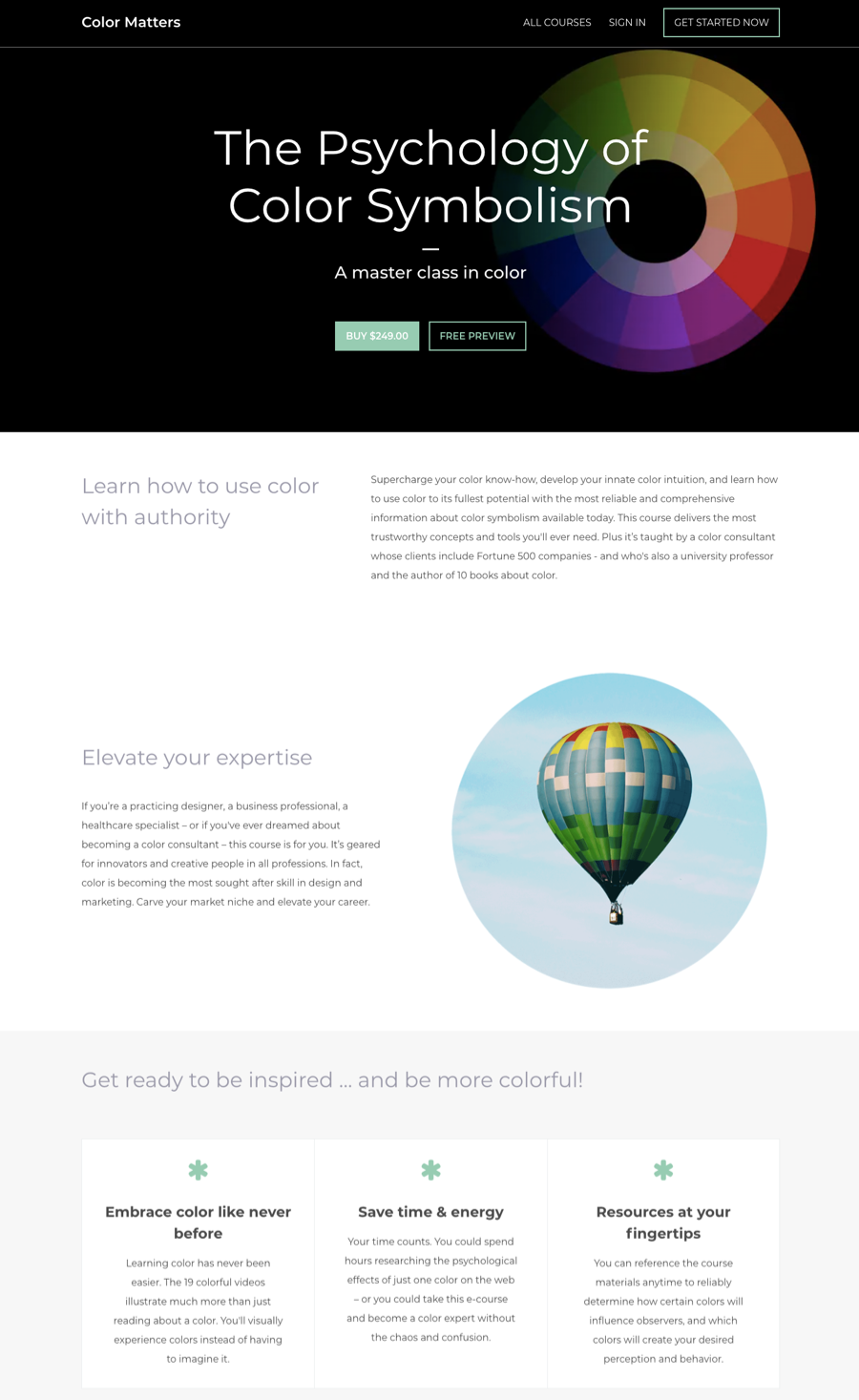 Color Matters’ course sales page