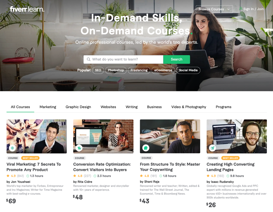 Fiverr Learn’s website