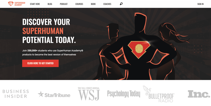 Superhuman Academy’s landing page