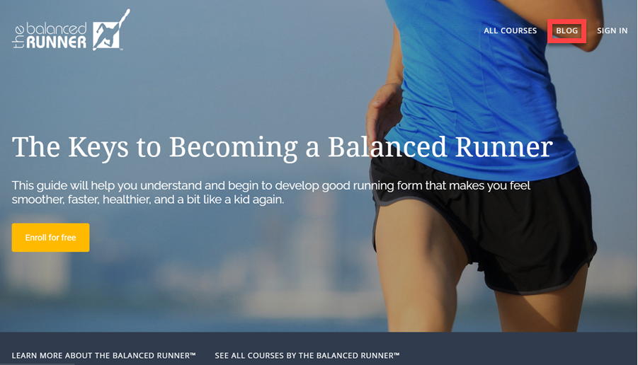 Conversely, the course platform connects back to The Balanced Runner’s blog located on the main site, maintaining a cohesive user experience.