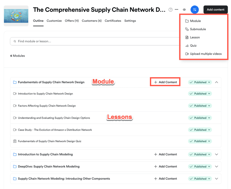 Regarding content integration, you have the option to add materials individually or to upload your entire collection of content simultaneously. Should you choose the mass upload method, these systems will proficiently convert each separate file into an individual lesson unit.