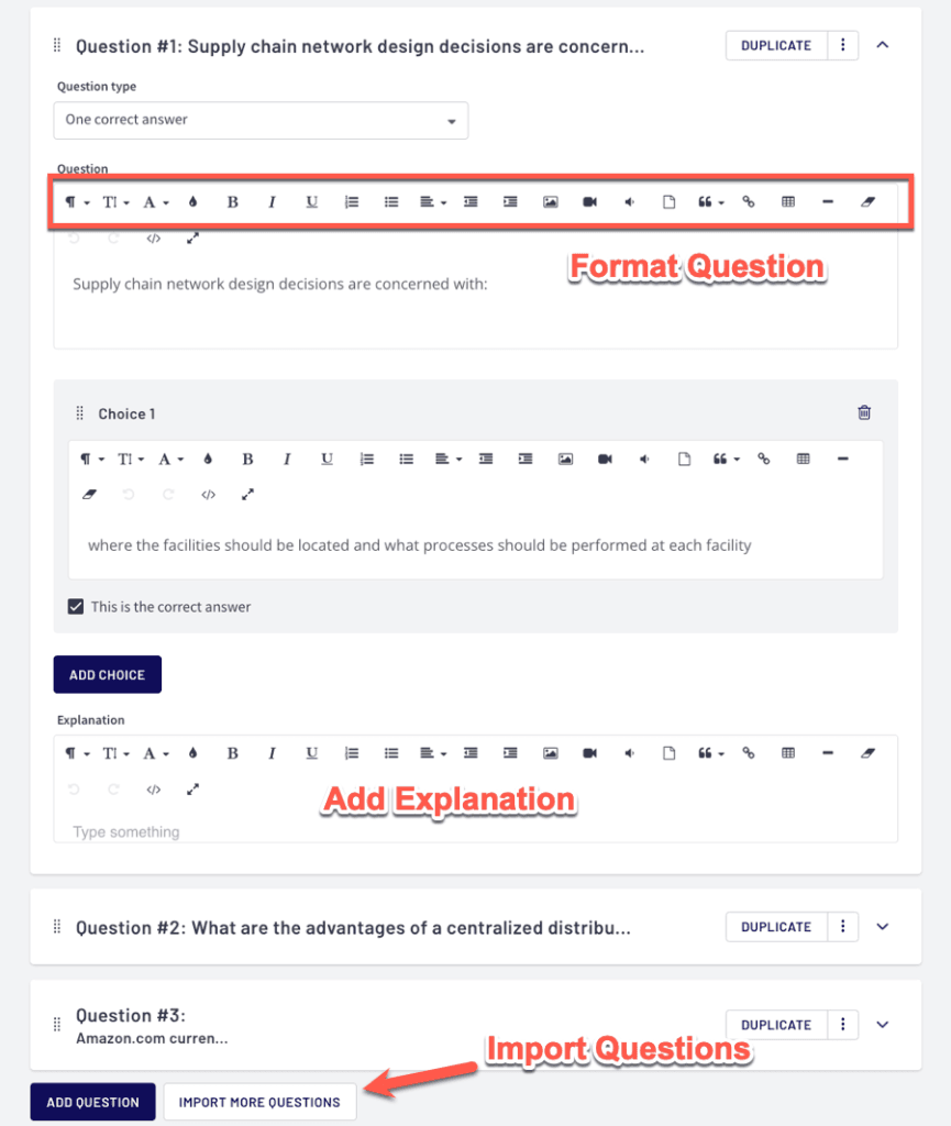 • Develop graded assessments featuring questions with single-choice and multiple-selection answer options.