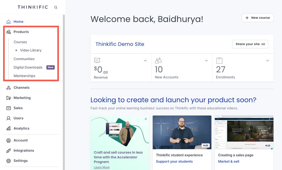 Beyond these applications, Thinkific also provides access to a public Application Programming Interface (API) and single sign-on (SSO) functionalities, granting you even greater operational versatility.