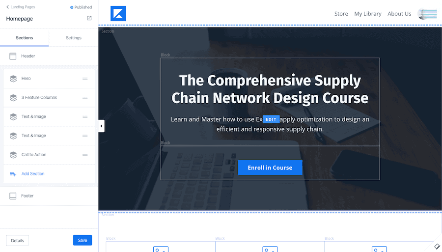 • An intuitive drag-and-drop interface for arranging lessons and modules in your courses.