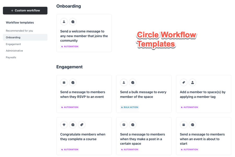 Finally, Circle.so boasts a potent Workflows feature that elevates community administration to a more sophisticated level.