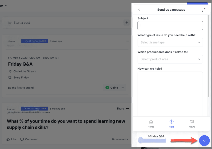 Support widget inside Circle account