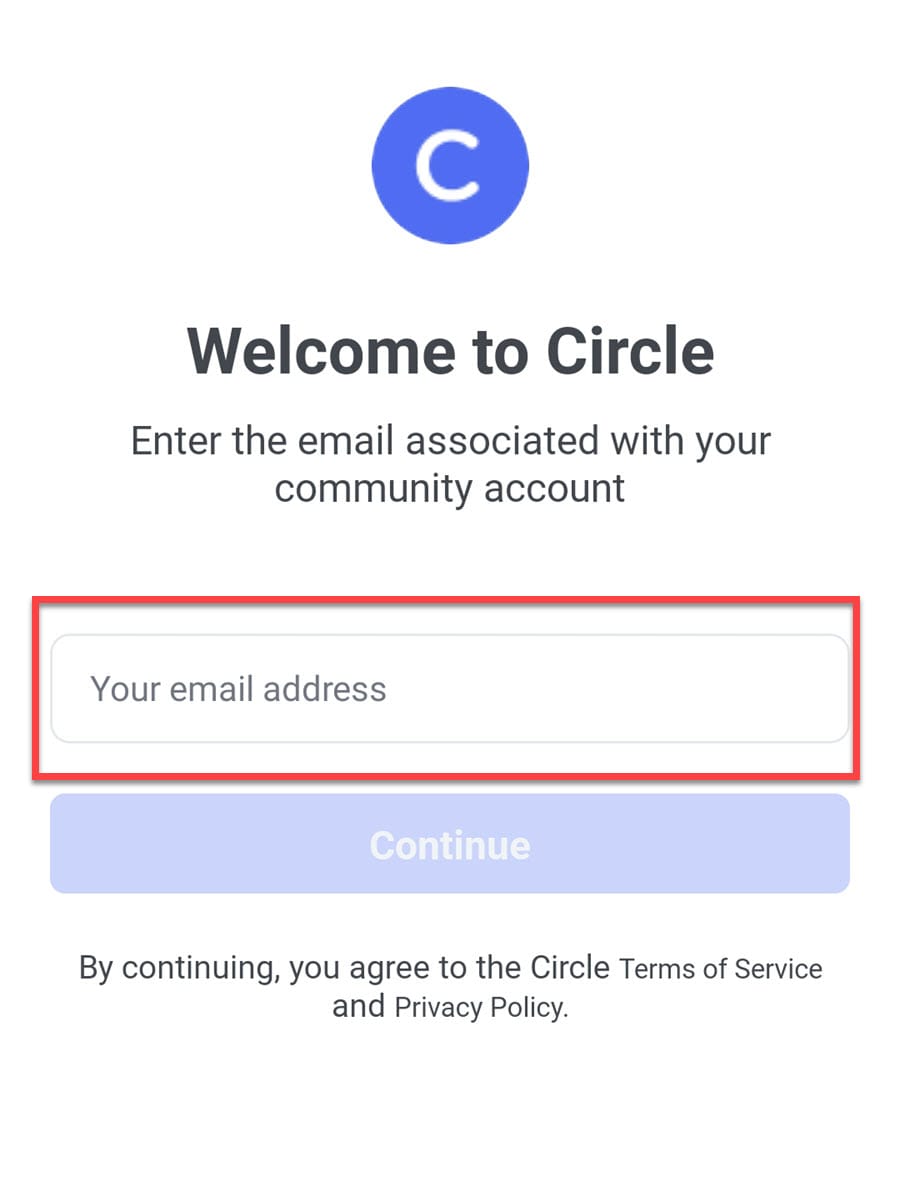 Once the application installation is complete, users will be requested to input the email address that is linked to their existing community account. It is important to be aware that Circle’s complimentary mobile applications do not presently facilitate the creation of new member accounts directly within the app.