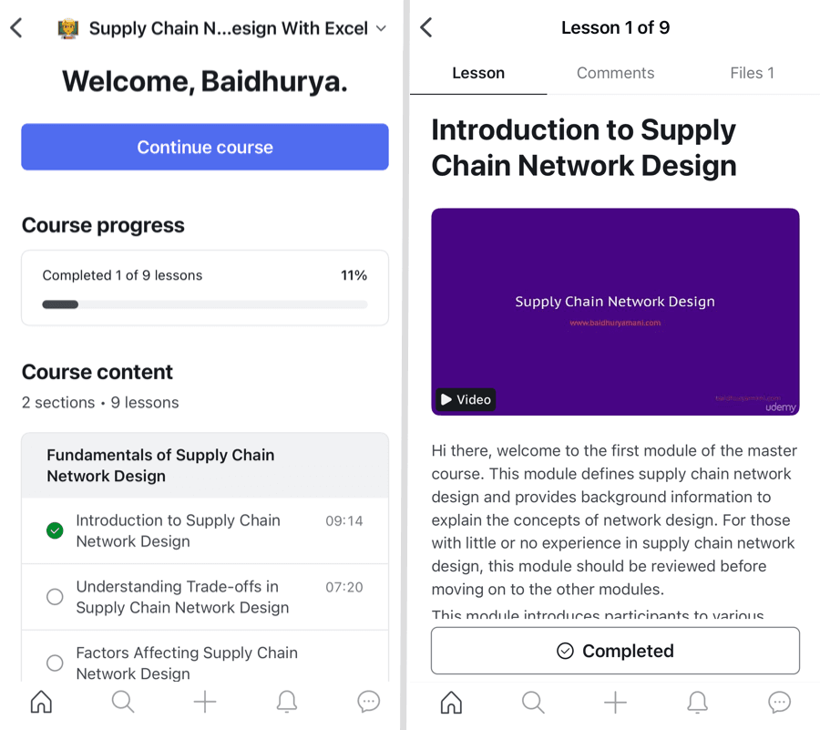 Consistent with other designated areas, your educational content sections are also conveniently listed on the application’s main screen. Members can simply tap on the relevant course space to open the course player, which allows them to view instructional videos, retrieve lesson materials, and contribute their thoughts via comments.