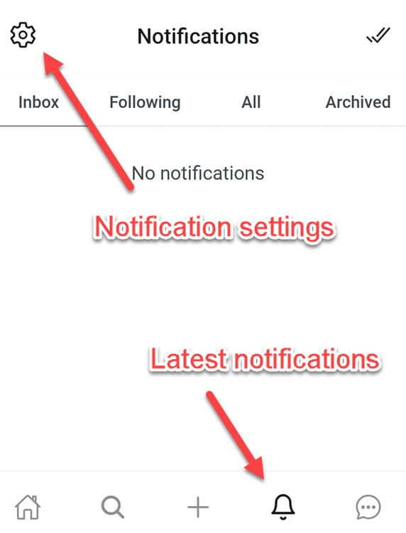 Accessing the notifications section is achieved by tapping the Bell symbol located at the screen’s lower edge. This area is where all their alerts are displayed. To navigate to the management interface, they should select the Gear emblem found at the top, which allows them to specify the types of activities and content for which they wish to receive updates.
