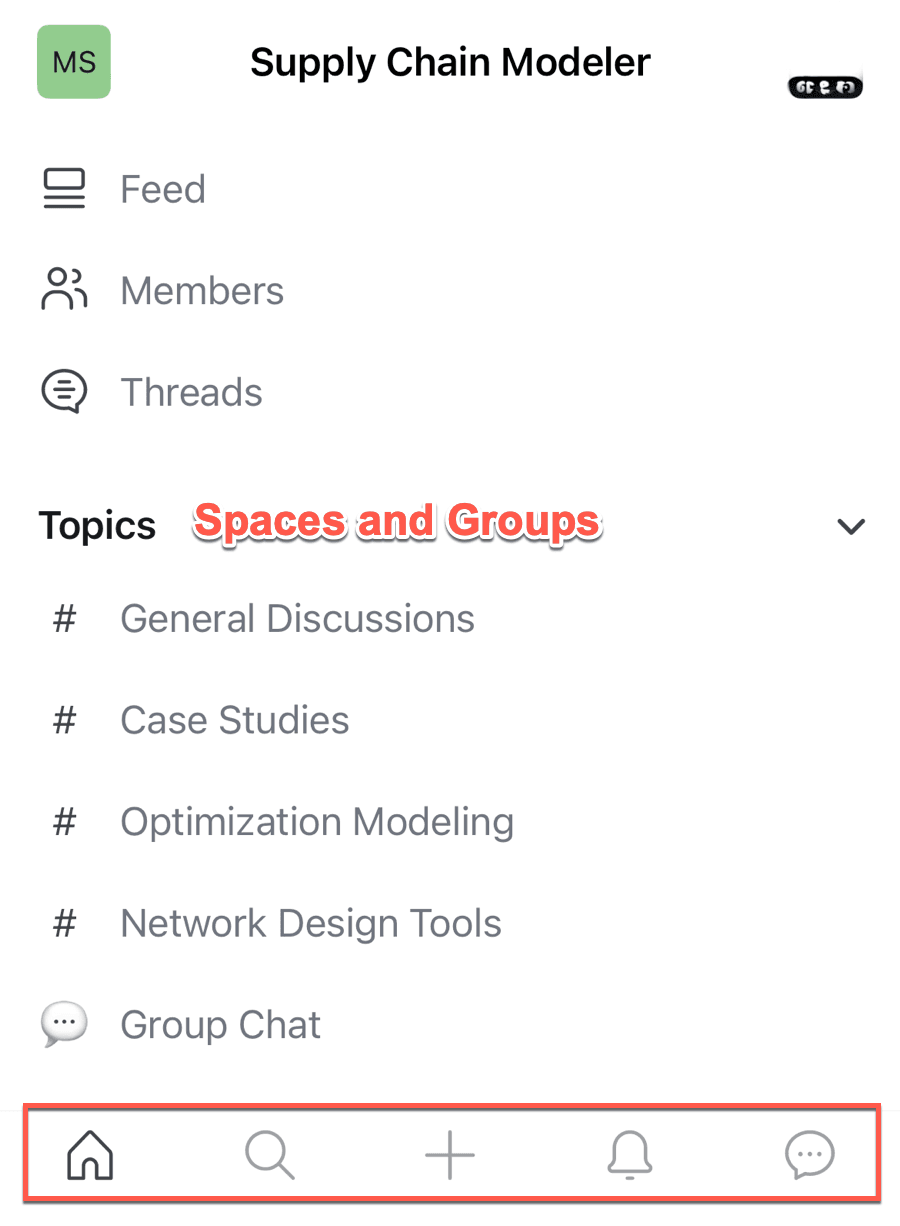 Upon launching the app, the homepage presents a comprehensive list of all the designated spaces within your community, ensuring that your members can effortlessly reach them. Moreover, it meticulously arranges all spaces and collections of spaces in the precise sequence that is established on the web-based version of the platform.
