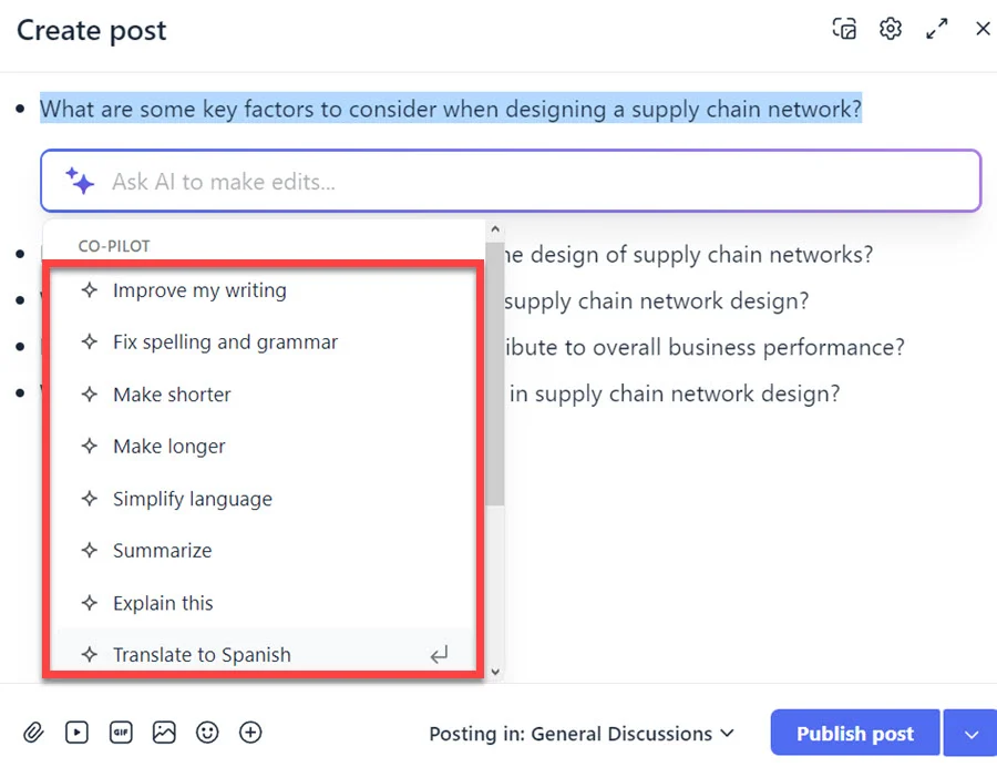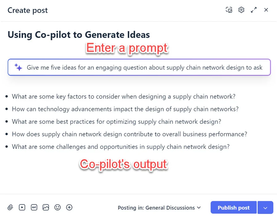 In essence, the co-pilot feature offers an exceptional method for enhancing content development efficiency within your community while simultaneously reducing the time investment required.