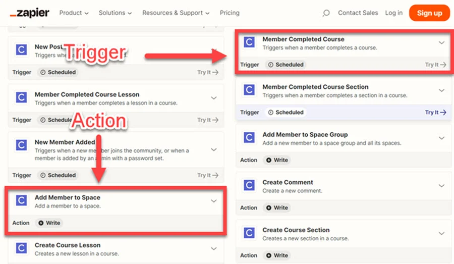 In addition to triggers, Zapier accommodates various Circle actions. These encompass the following capabilities:
