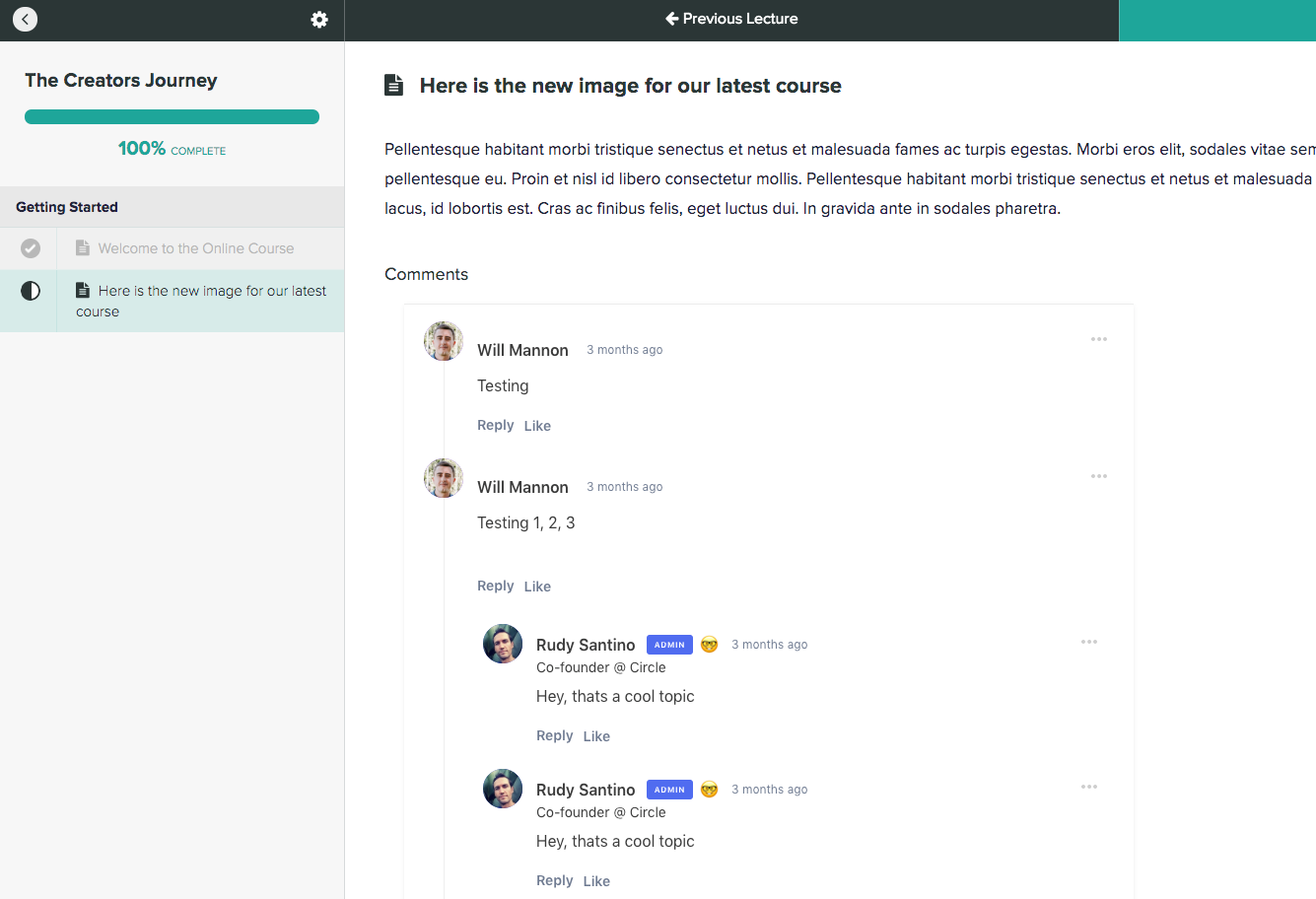 • Transfer your existing community into the platform. Through Spaces, Posts, Course Lessons, Course Sections, and additional APIs, you can extract information from your current community system and automatically establish equivalent structures in your new environment.