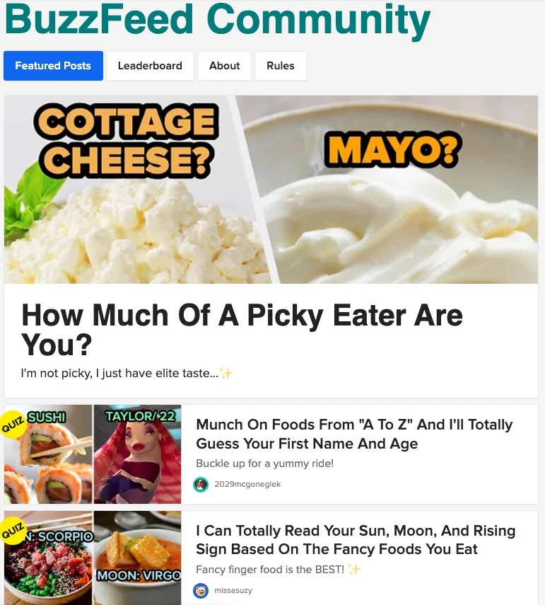 However, Buzzfeed has also dedicated an entire section of its platform specifically to member-created content called Buzzfeed Community. In this space, visitors can contribute their original content to Buzzfeed and earn recognition points based on their submissions’ popularity. This strategic achievement system maintains engagement while motivating contributors to develop increasingly compelling material.
