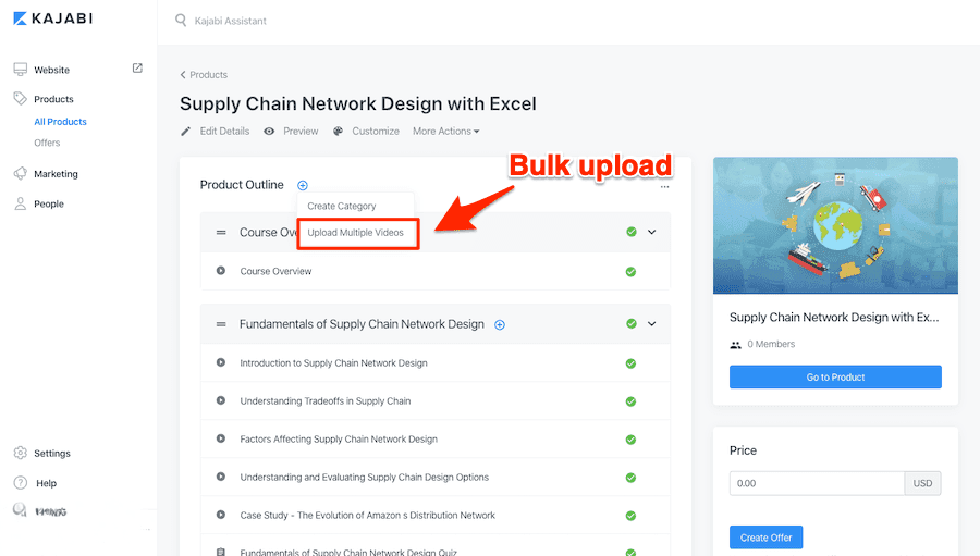 Initially, the course development journey in Kajabi is quite direct and simple. Upon generating a new “Product,” you can organize its framework using “Categories” (representing modules) and “Posts” (representing lessons), and then conveniently introduce your content into these elements.