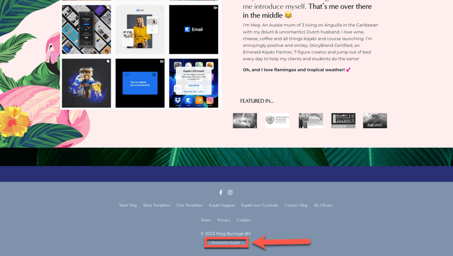 Upon constructing a course with Kajabi, the system’s default Powered by Kajabi notice will be displayed in the footer area of your website.
