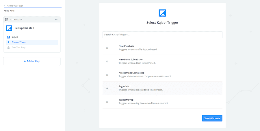 Similarly, Kajabi offers an Assessment Completed trigger which can start your Zap whenever a student finishes a quiz. However, I find that using the Tag Added trigger in Kajabi is a better approach because it offers much greater versatility.