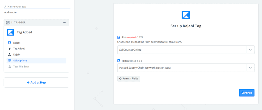 So, you have the ability to tag your users within Kajabi upon their successful quiz completion and then use that specific tag to initiate this Zap.