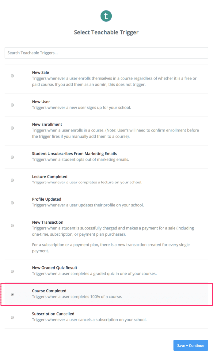 Therefore, you will just need to substitute the existing Quiz Result trigger with the Course Completion one in your Zap, while the rest of your automated setup can stay exactly as it is.