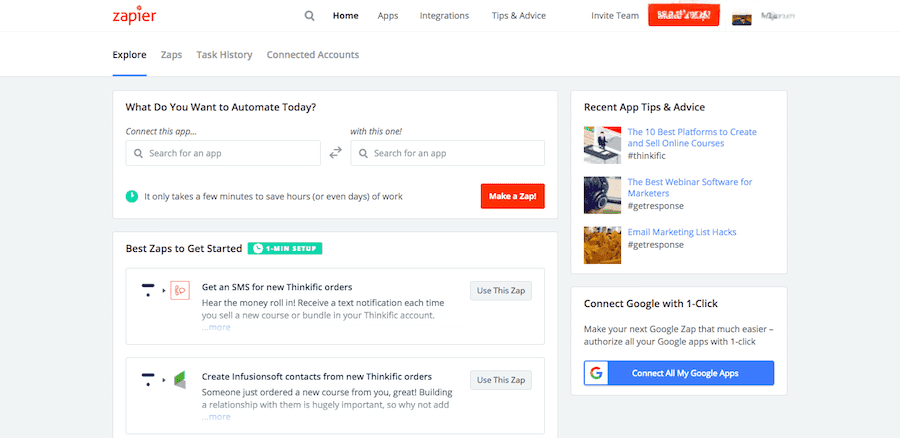 If you have an existing account, just sign in, and you will notice the ‘Make a Zap’ button located in the upper section of the dashboard. Click this button to initiate the process of building your new automated workflow.