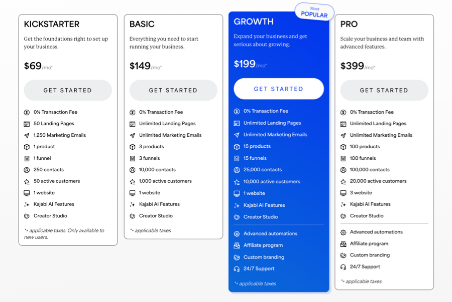 Kajabi delivers substantially more extensive functionality, which naturally commands a premium price point. Kajabi’s subscription structure begins at $69/month, with their most widely selected package priced at $199/month, despite offering the advantage of zero transaction fees on any plan level.