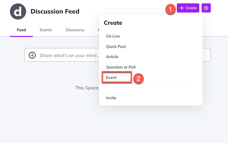 To initiate an event, the preliminary step involves activating the Events feature within a designated Space.