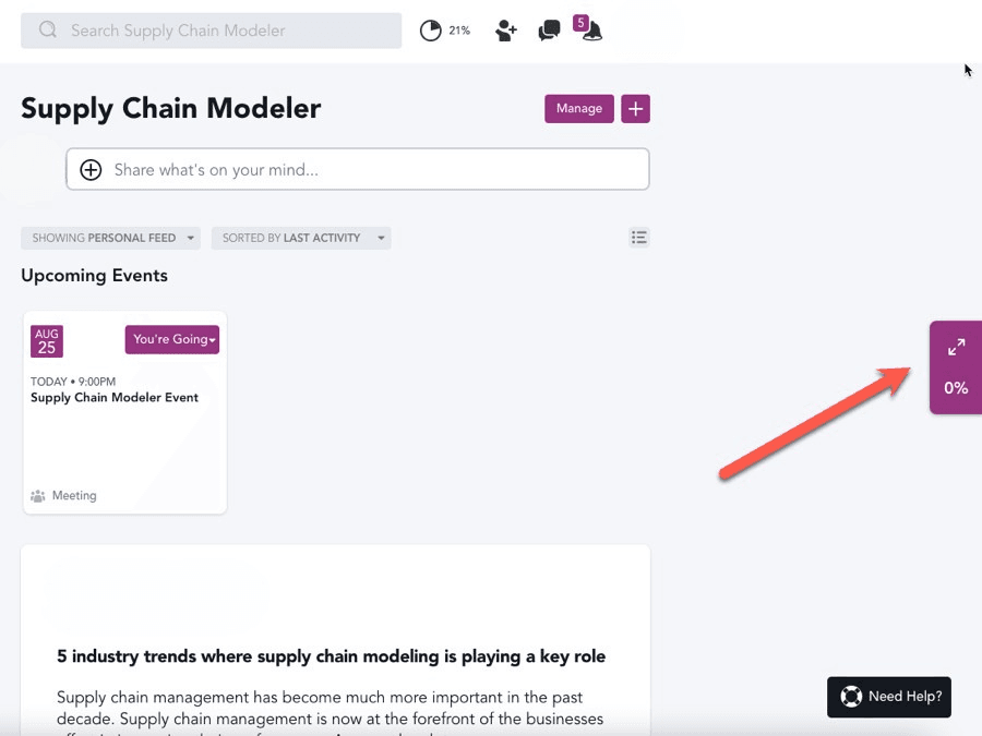 After you have completed the personalization of the checklist, it will be visible on the right-hand side of your community interface. This is also the manner in which it will be presented to your members.