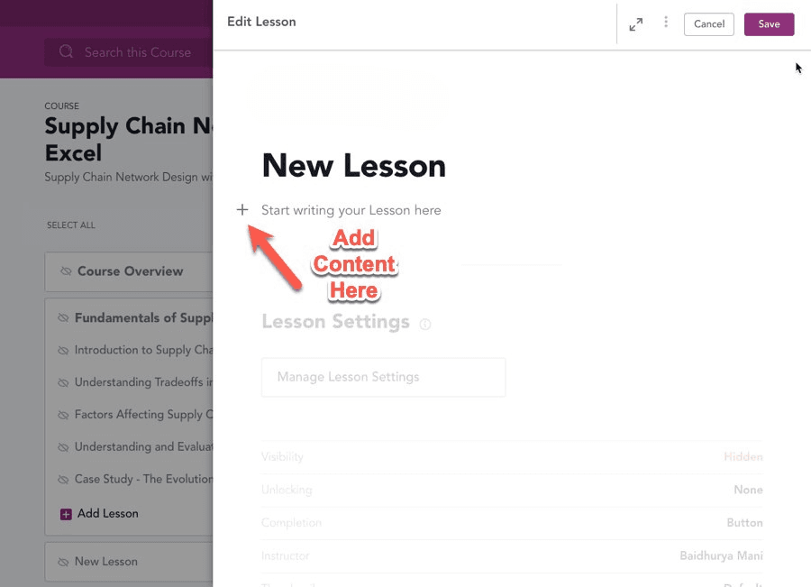 Once you are content with the curriculum’s overall structure, you can proceed to populate your individual lessons with the necessary educational material.