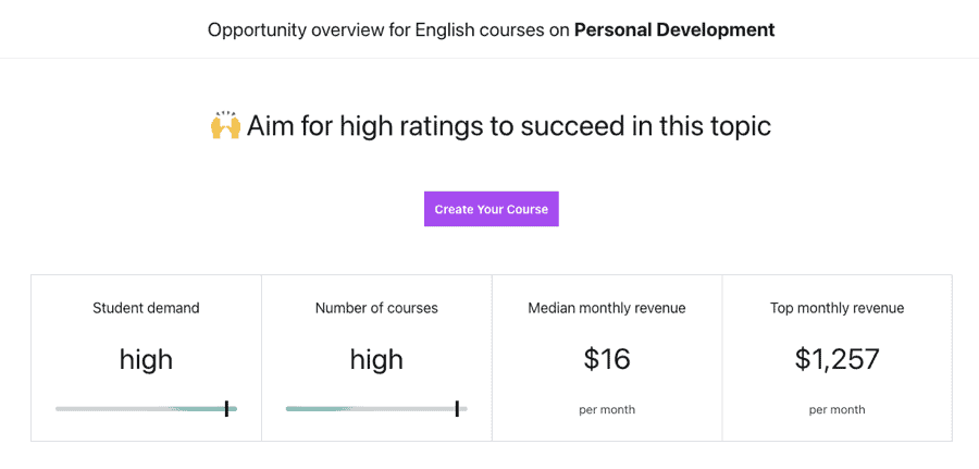 Self-improvement courses deliver notable success on Udemy, though they typically attract a more focused audience than the subjects we previously analyzed. Nevertheless, this remains a promising arena for educational content creation, especially if you intend to distribute digital learning materials directly through your own website.