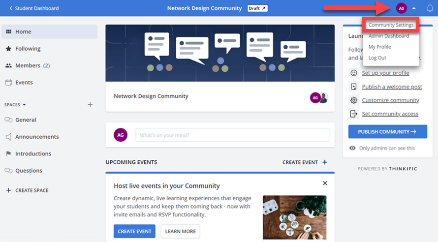 Inside this community area, both you and your learners can create text-based updates, incorporating videos and images. Participants can interact with these updates using likes and adding comments.
