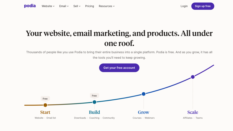 Regarding promotion and transaction handling, Podia provides the necessary instruments for accepting payments and distributing your course materials. Integrated email marketing functionalities are also included. Let’s examine these features in more detail.