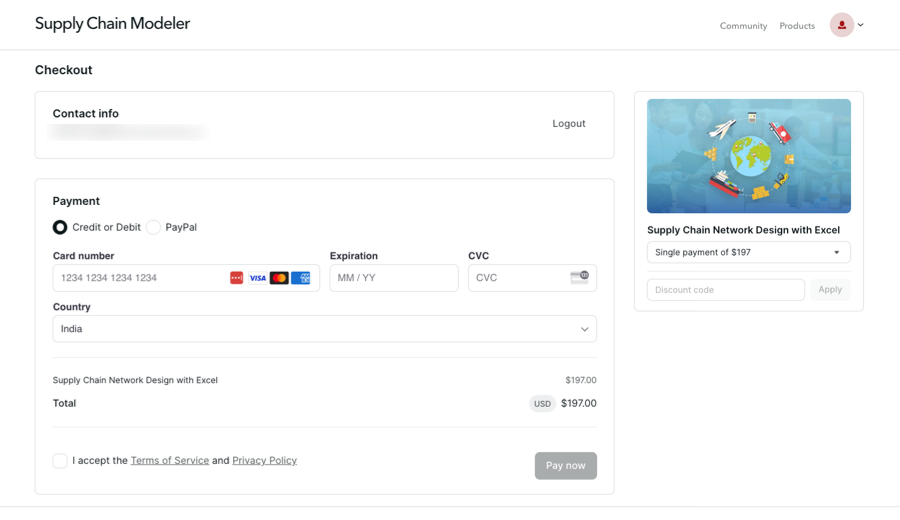 A sample checkout page on Podia