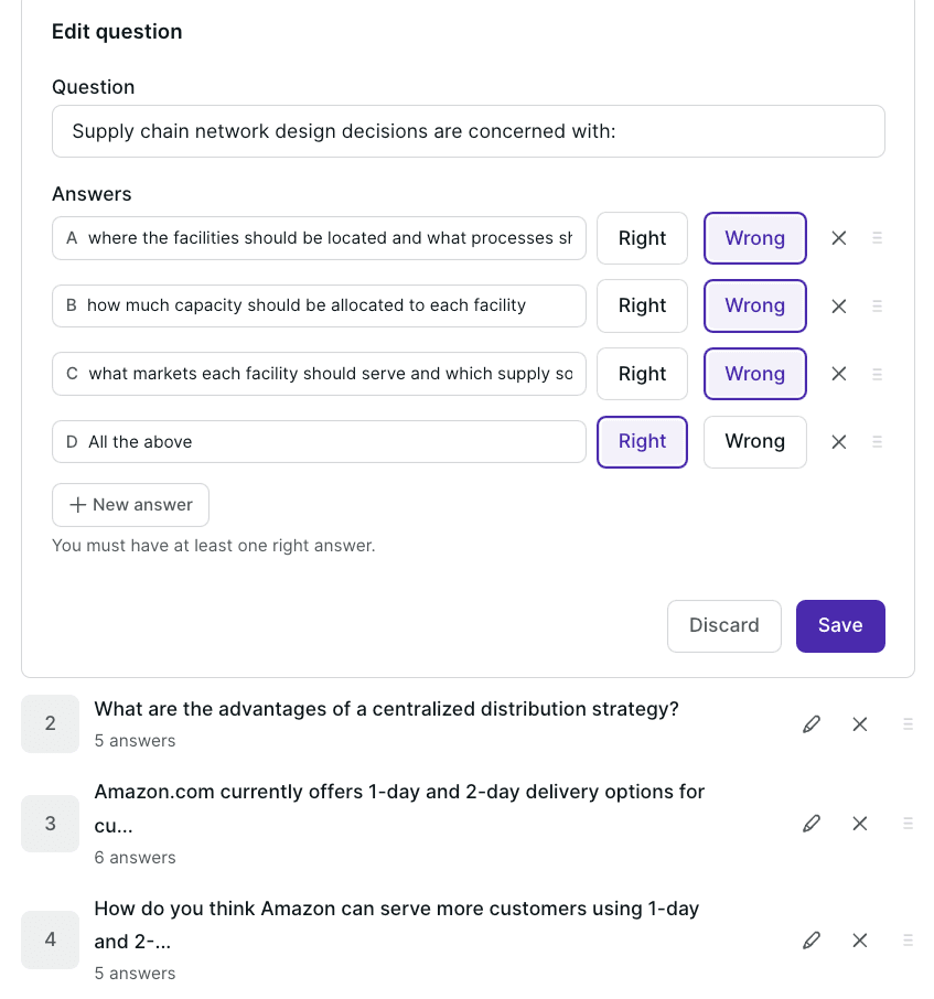 Unsurprisingly, it also omits advanced capabilities like providing explanations for answers, limiting retake attempts, or utilizing question repositories.