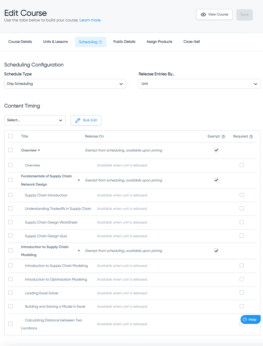 For each newly released unit or lesson, you can determine the specific day of the week it becomes accessible or set a number of days post-enrollment after which it unlocks. You also have the ability to exclude particular lessons from the drip sequence, making them accessible to your students right away.