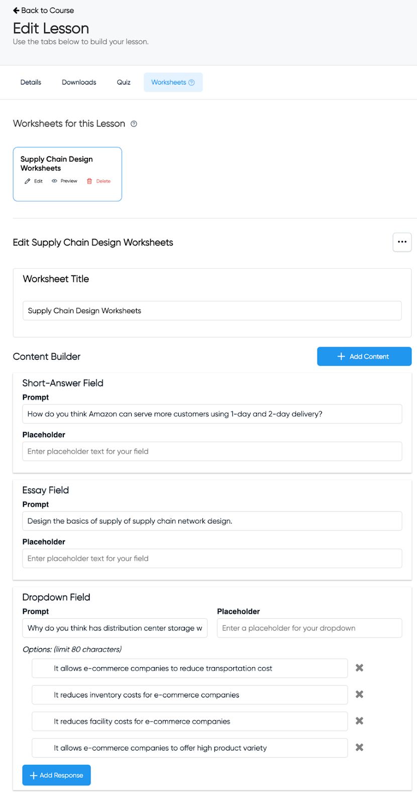 SamCart introduces an alternative assessment feature known as Worksheets, which enables you to include: