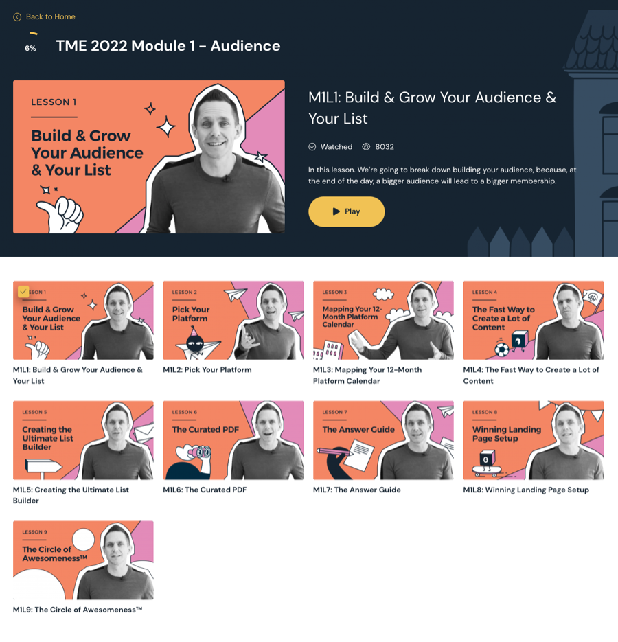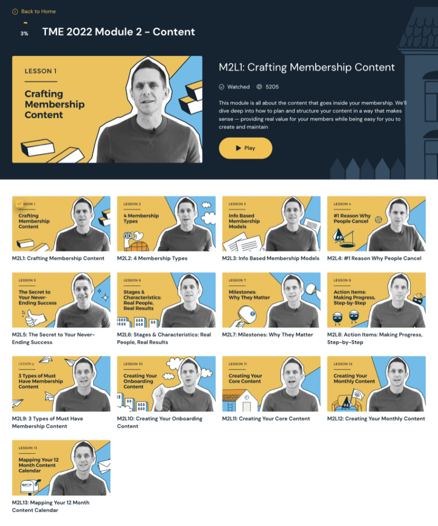 The primary distinguishing characteristic of The Membership Experience remains its instructional substance. The lessons encompass everything from planning and constructing your membership to expansion and scalability.