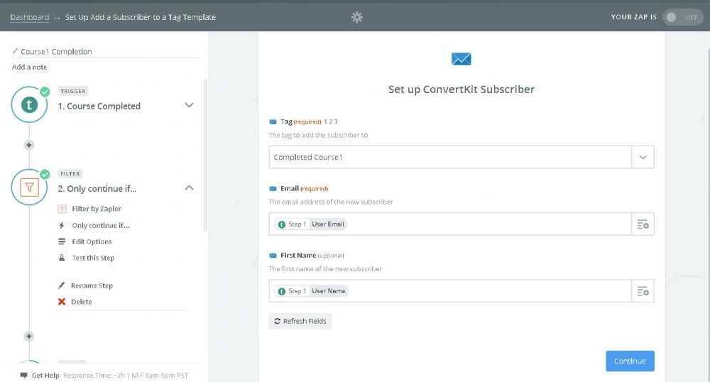 You can now activate your Zap by turning it on. From this point forward, anyone who completes this specific course will be automatically tagged appropriately within ConvertKit.