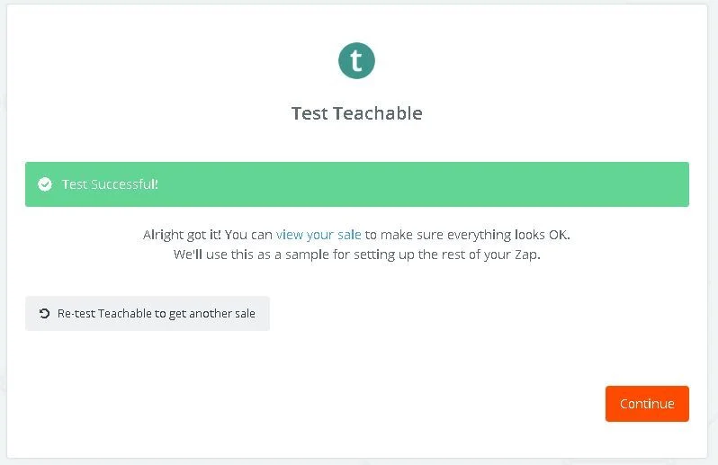 If you’ve already established a connection with your Teachable account, simply proceed by clicking the continue button.