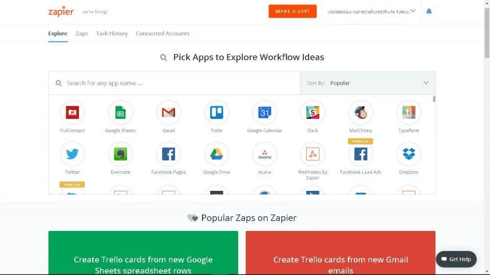 1. Create or access your Zapier account. After logging in, locate and click the ‘Make a Zap’ button at the top of the page