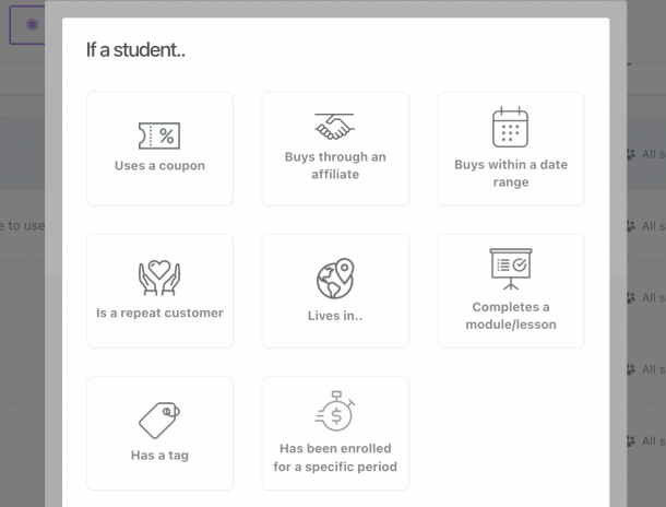 For instance, you have the ability to include supplementary bonus content within your course and restrict its availability exclusively to students who opted for a premium tier or make it accessible only during a predefined period.